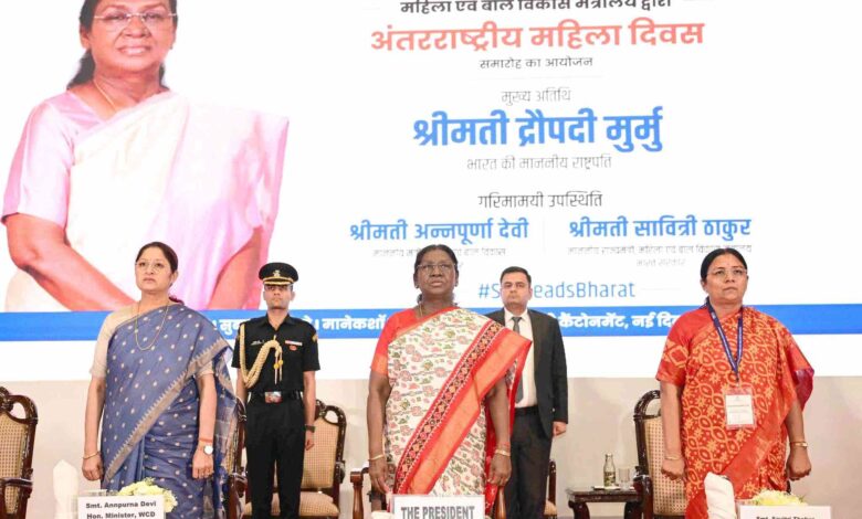 राष्ट्रपति द्रौपदी मुर्मु ने नई दिल्ली में आयोजित अंतर्राष्ट्रीय महिला दिवस समारोह में भाग लिया