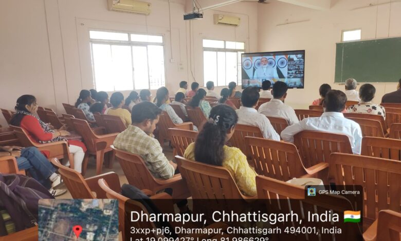 अकादमिक भवन सभागार में स्मार्ट बोर्ड के सहारे प्रधानमंत्री नरेंद्र मोदी के वीडियो कॉन्फ्रेंसिंग का लाइव प्रसारण विद्यार्थियों ने सुना। प्राध्यापक व स्टूडेंट्स मोबाईल पर वेब लिंक से जुड़कर भी लाभान्वित हुए।