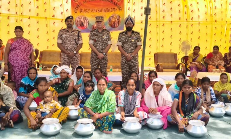 241 बस्तरिया बटालियन, केन्द्रिय रिजर्व पुलिस बल द्वारा दिनांक 28 एवं 29 मार्च 2026 को गांव कागोंपल्ली थाना मोदकपाल, जिला बिजापुर, गांव मिनकापल्ली थाना मद्देड जिला बिजापुर एवं डब्बामार्का कैंप थाना किस्ताराम जिला सुकमा में सिविक एक्सन प्रोग्राम का आयोजन किया गया, जिसके अन्तर्गत स्थानीय जनता के लिए पानी टंकी, आम, अमरुद और कठल के पौधे, सोलर लान्टीन, गांव के युवाओं के खेल कुद के लिए किकेट किट, वालीवॉल किट, फुटबाल, कृषि उपयोग सामान, महिलाओं के लिए कढाई, स्टिल डेक्ची, थाली, गिलास, पुरुषों के लिए गमछा, लुंगी, स्कूल जाने वाले बच्चों के लिए नोट बुक्स, स्कूली बैग, वाटर वोटल, पेन्सिल पैकेट, पेंसिल बाक्स, सार्पनर, इरेजर, वालपेन, जिमेटरी बाक्स, व गरीब महिलाओं के लिए साड़ियों, चप्पल का भी वितरण किया गया।