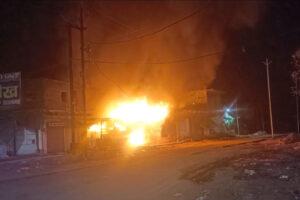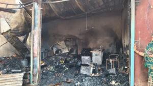 पोहरी मेन चौराहे पर भीषण आग, तीन दुकानें जलकर राख