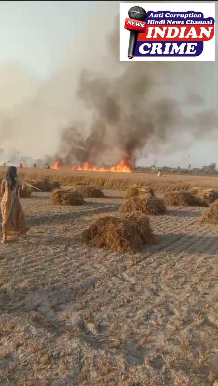 तारों से निकली चिंगारी से 14 बीघा गेहूं की फसल जल