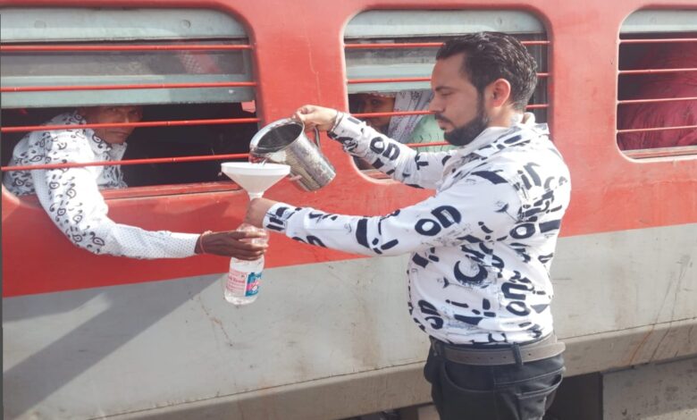 भीषण गर्मी में रेलवे स्टेशन पर सूखों कण्ठो को मिल रहा है ठण्डा जल