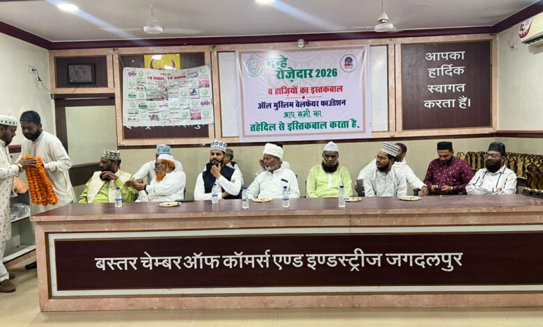 बस्तर चैम्बर ऑफ कॉमर्स के सभागार में नन्हे रोजेदार 2026 कार्यक्रम का गरिमामय आयोजन संपन्न हुआ। इस विशेष समारोह में जहाँ नन्हे बच्चों को उनके रोजों के लिए सम्मानित किया गया, वहीं इस वर्ष हज की मुकद्दस यात्रा पर जाने वाले जायरीन का भी शॉल ओढ़ाकर आत्मीय सम्मान किया गया।