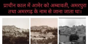 आमेर जयपुर नगर सीमा मे ही स्थित उपनगर है ,इसे मीणा राजा आलन सिंह ने बसाया था,कम से कम ९६७ ईस्वीसे यह नगर मौजूद रहा है ,इसे १२३७ ईस्वी मे राजपूत जाति के कच्छावा कुल धोखे से जीत लिया था। आमेर नगरी और वहाँ के मंदिर जों मीणाओं द्वारा किला स्थापित करते दौरान बनाया गया था मां अंबिका मंदिर, आमेर में ही है चालीस खम्बों वाला वह शीश महल, जहाँ माचिस की तीली जलाने पर सारे महल में दीपावलियाँ आलोकित हो उठती है। हाथी की सवारी यहाँ के विशेष आकर्षण है, जो देशी सैलानियों से अधिक विदेशी पर्यटकों के लिए कौतूहल और आनंद का विषय है। अम्बे मां के मन्दिर के नाम पर यह नगर “आमेर” बना इसकी भीतरी दीवारों, गुम्बदों और छतों पर शीशे के टुकड़े इस प्रकार जड़े गए हैं कि केवल कुछ मोमबत्तियाँ जलाते ही शीशों का प्रतिबिम्ब पूरे कमरे को प्रकाश से जगमग कर देता