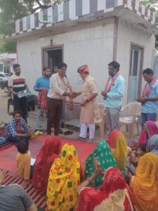चौमूँ : भाजपा प्रदेश मुख्य प्रवक्ता एवं विधायक रामलाल शर्मा राजनीति में सदैव अपनी सक्रिय भूमिका और अनूठी पहल से चर्चा में रहते हैं, इसी कड़ी में एक अनूठी पहल उन्होंने विधानसभा क्षेत्र चौमूं में “मेरा बूथ-मेरा सम्मान” कार्यक्रम से की है। आपको बता दें कि विधानसभा क्षेत्र चौमूं में सभी 226 बूथों पर विधायक रामलाल शर्मा द्वारा प्रत्येक बूथ पर जाकर बूथ अध्यक्ष एवं बूथ एजेंट का सम्मान किया जाएगा। मेरा बूथ मेरा सम्मान कार्यक्रम का शुभारंभ विधायक रामलाल शर्मा ने रविवार को बूथ संख्या 114 पुरानी ढाणी आड़ागेला टाकरडा से प्रातः 9 बजे किया। विधायक रामलाल शर्मा ने बूथ अध्यक्ष और बूथ एजेंट को सम्मानित किया। उन्होने कहा कि आज मेरा परम सौभाग्य है कि बूथ पर आकर पार्टी को मज़बूती प्रदान करने का कार्य करने वाले बूथ अध्यक्ष एवं बूथ एजेंट का सम्मान करने का मौक़ा मिला है। भारतीय जनता पार्टी कार्यकर्ताओं की मेहनत और परिश्रम पर निर्भर करने वाली पार्टी है।
