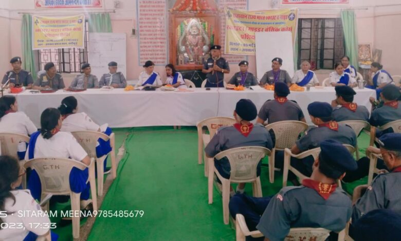 आज दिनांक 8 मई 2023 को अग्रवाल समाज भवन बांदीकुई परिसर में संचालित सात दिवसीय स्काउट/गाइड यूनिट लीडर बेसिक कोर्स में अवलोकन के लिए राज्य प्रशिक्षण आयुक्त बन्नालाल जी, राज्य संगठन आयुक्त (गाइड) सुयश जी लोढा एवं सहायक राज्य संगठन आयुक्त दामोदर प्रसाद जी शर्मा पधारे। शिविर संचालक कुलदीप शर्मा ने शिविर प्रतिवेदन के माध्यम से बताया कि शिविर में 53 स्काउट एवं 36 गाइड संभागी प्रशिक्षण प्राप्त कर रहे हैं। सभी संभागियों को संबोधित करते हुए श्री दामोदर प्रसाद जी शर्मा ASOC ने स्काउट क्या है, विषय पर विस्तार से जानकारी प्रदान की। सुयश जी लोढ़ा SOC ने स्काउट अनुभवों को बताते हुए स्काउटिंग के प्रभावी संचालन के तरीके बताए। बन्नालाल जी STC ने प्रशिक्षण की बारीकियों को समझाते हुए प्रगतिशील प्रशिक्षण के सोपानों के बारे में जानकारी प्रदान की। सीओ इन्दु तंवर एवं सीओ प्रदीप सिंह जी के द्वारा सभी अतिथियों का शाब्दिक स्वागत किया गया। शिविर संचालिका श्रीमती परमेश्वरी जी के द्वारा सभी अतिथियों का धन्यवाद ज्ञापन दिया गया। सभी के द्वारा बालिका आदर्श विद्या मंदिर परिसर में पक्षियों के लिए परिण्डे लगाकर परिण्डा अभियान की शुरुआत की। इस अवसर पर सचिव गोवर्धन लाल गुप्ता, सीताराम जांगिड़, सुरेश शर्मा, कृष्णावतार खंडेलवाल, गिर्राज जी सैनी, मुकेश कुमार शर्मा, सुश्री उषा जी जोशी, गुलाब जी मीणा, उषा जी पारीक, सरोज जी शर्मा, कश्मीरी बाई मीना, उर्मिला जी शर्मा सहित स्काउट गाइड संभागी उपस्थित रहे।