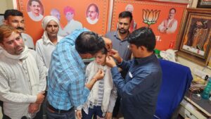 चौमूँ: आज शहर के सुभाष सर्किल स्थित विधायक कार्यालय पर स्वीट वाइस स्कुल सीतारामपुरा की छात्रा खुशी यादव पुत्री श्री शंकर लाल यादव को आज विधायक रामलाल शर्मा ने भामाशाह के आर्थिक सहयोग से कान की मशीन उपलब्ध कराई गई। विधायक रामलाल शर्मा ने बच्ची के कान पर मशीन लगाई। मशीन पाकर बच्ची के चेहरे पर काफ़ी खुशी देखने को मिली। छात्रा के पिता शंकरलाल यादव निवासी अहीरों की ढाणी चौमूँ ने बताया कि मेरी बेटी को बचपन से ही सुनने में दिक़्क़त थी