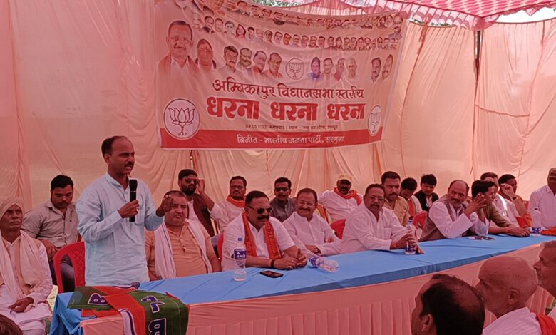 प्रदेश की जनता के साथ कर्मचारी अधिकारी भी त्रस्त हैं। भाजपा नेताओं ने भूपेश सरकार की नाकामियों को लताड़ते हुए कहा इस बार प्रदेश की जनता एक एक हिसाब का बदला लेकर पूर्ण बहुमत के साथ भाजपा की सरकार बनाएगी। कार्यक्रम के बाद 15 सूत्रीय जनसमस्याओं की निराकरण कराने जाने के लिए राज्यपाल के नाम तहसील उदयपुर नायब तहसीलदार डॉ. एजाज हाशमी को ज्ञापन सौंपा गया। धरना प्रदर्शन में भाजपा मंडल अध्यक्ष अनिल प्रताप सिंह, अखंड विधायक सिंह, संतोष जायसवाल, श्यामलाल जायसवाल, महेश जायसवाल, वेदांत तिवारी, रोचक गुप्ता, कन्हाई राम बंजारा उदारपाल राजवाड़े सहित सैकड़ों की संख्या में कार्यकर्ता व ग्रामीण मौजूद रहे। इस दौरान माइक का संचालन प्रबोध सिंह एवं आभार व्यक्त राधेश्याम ठाकुर ने किया।स्वास्थ्य मंत्री टीएस सिंह देव के बिलासपुर में ऐम्स कि प्रस्ताव दिए जाने पर आक्रोशित भाजपाइयों ने कहा सरगुजा संभाग की जनता के साथ स्वास्थ्य मंत्री ने छलावा व्यवहार किया है संभाग की जनता स्थानीय अस्पतालों में बेहतर इलाज नहीं होने पर मजबूरन रायपुर सहित अन्य राज्यों में जाकर इलाज कराते हैं। 14 विधानसभा के लाखों लोगों के लिए सर्व सुविधा युक्त ऐम्स अस्पताल की जरूरत अंबिकापुर में है। जिसे तीन बार मौका देकर जनता विधायक से मंत्री तक बनाया परंतु इस बार साड़ी कंबल के साथ अन्य बहकावे में जनता नहीं आने वाली है।