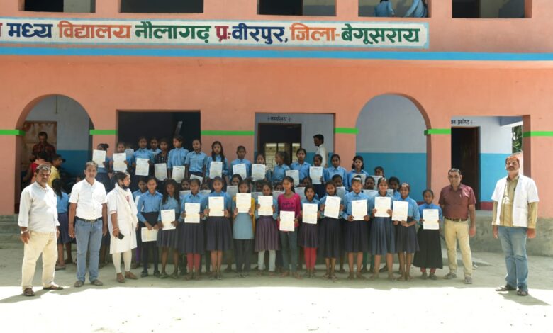 बेगूसराय :- वीरपुर प्रखंड के नौला पंचायत के अंतर्गत राजकीय कृत मध्य विधायल नौला मे आज दिंनाक 9/05/2023/ को बेगूसराय के डॉक्टर के द्वारा राजकीय कृत मध्य विधायल नौला स्वास्थ्य अभियान चलाया गया| डॉक्टर रितेश रमन ने बताया कि जिन बच्चों को कार्ड बना गया है और जिन बच्चों को नहीं बना है उसको आगे बनाया जाएगा | राजकीय कृत मध्य विद्यालय नौला मेंकई डॉक्टर उपस्थित थे |