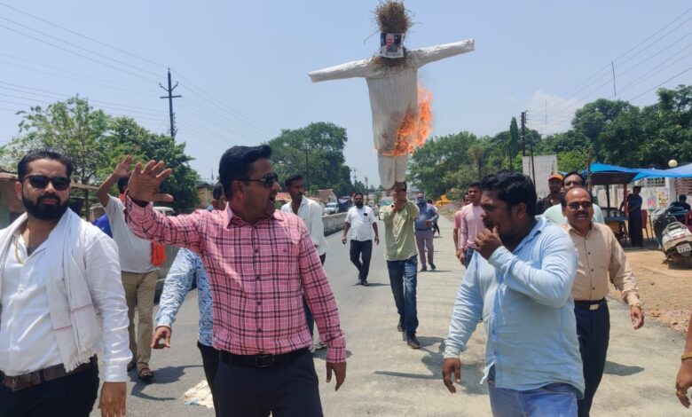 नारायणपुर भाजपा शहर मंडल नारायणपुर के द्वारा प्रदेश नेतृत्व के आवहन पर नगर के जयस्तंभ चौक मे छत्तीसगढ़ मे हुए 2000 करोड़ रुपये के शराब घोटाले को लेकर मुख्यमंत्री भुपेश बघेल व आबकारी मंत्री कवासी लखमा का पुतला फूंका व जमकर नारेबाजी की।इस दौरान शहर भाजपा मण्डल अध्यक्ष प्रभूनाथ देवांगन ने मीडिया को जारी बयान मे कहा की छतीसगढ़ के भ्रष्ट कांग्रेस सरकार के द्वारा 2000 करोड़ के शराब घोटाले को लेकर कांग्रेस महापौर एजाज ढेबर के भाई अनवर ढेबर को ईडी ने गिरफ्तार कर जेल भेजा है। प्रदेश मे लगातार भुपेश सरकार भ्रष्टाचार के कीर्तिमान स्थापित कर रही ये बात प्रदेश की जनता से छिपी नही है आने वाले 2023 विधानसभा चुनाव मे इस भ्रष्टाचार रूपी कांग्रेस सरकार की बिदाई तय है। इस अवसर पर भाजपा कार्यकारी जिलाध्यक्ष रतन दुबे, भाजपा नेताओं बृजमोहन देवांगन,मरण शील,संजय तिवारी,पंकज जैन, सुदीप झा, जैकी कश्यप, मनोज चालकी, राजेंद्र प्रजापति, अशोक कर्मकार, अख्तर अली, धनजय बघेल, बिटटू अंगीरा,मुकेश देवांगन, आशिष मित्रा,टीपू राठौर सहित अन्य पदाधिकारी व कार्यकर्त्ता मौजूद थे।