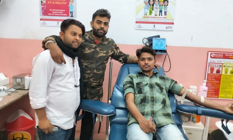 Rajasthan News सड़क दुर्घटना से घायल व्यक्ति को रक्तदान करके निभाया मानवता का फर्ज।