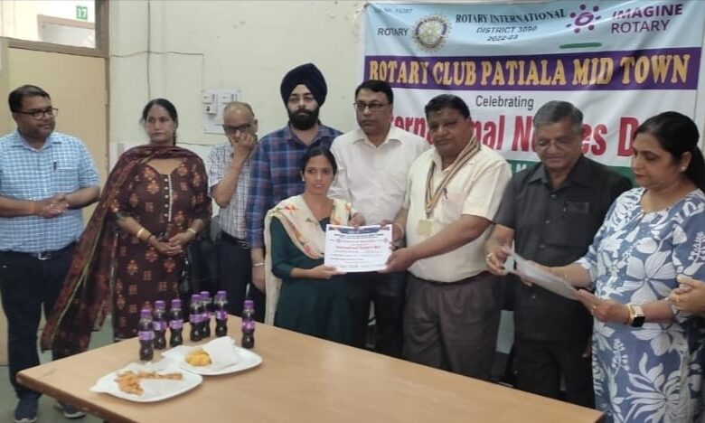 Punjab News रोटरी क्लब पटियाला मिड टाउन ने सामुदायिक स्वास्थ्य केंद्र त्रिपुरी में अंतरराष्ट्रीय नर्स दिवस मनाया