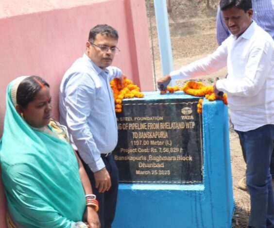 पाइपलाइन परियोजना का उद्घाटन मयंक शेखर, चीफ, सिजुआ ग्रुप, झरिया डिवीजनटाटा स्टील फाउंडेशन ने वाटर पाइपलाइन परियोजना का उद्घाटन किया