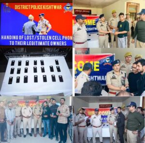 आम जनता तक सेवाओं का विस्तार करने और उनकी शिकायतों का निवारण करने के अपने प्रयासों को जारी रखना। पिछले कुछ महीनों से किश्तवाड़ पुलिस साइबर सेल को विभिन्न व्यक्तियों के मोबाइल गुम होने की विभिन्न शिकायतें मिली थीं। इस पर किश्तवाड़ पुलिस की साइबर सेल ने कड़ी मशक्कत के बाद 20 खोए हुए मोबाइल फोन बरामद किए। एसएसपी किश्तवाड़ श. खलील पोसवाल-जेकेपीएस ने लापता मोबाइल फोन को उनके वैध मालिकों को सौंप दिया। उन्होंने आम जनता से अपने मोबाइल का अत्यधिक ध्यान रखने की अपील की क्योंकि मोबाइल फोन में हमेशा किसी व्यक्ति का व्यक्तिगत डेटा होता है और इसके दुरुपयोग की पूरी संभावना होती है।