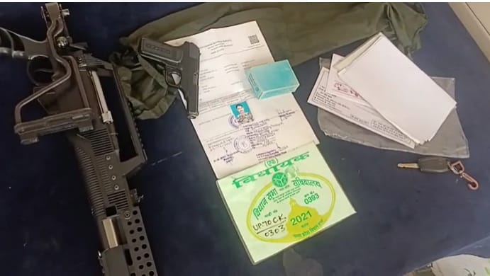 प्रतापगढ़ पुलिस ने घेराबंदी कर सफारी कार पकड़ी सफारी कार में लगा मिला विधायक का पास गाड़ी से पिस्टल, कारतूस और राइफल बरामद दो प्राइवेट कमांडो समेत चार लोगों को पकड़ा पुलिस सभी को ले गई कोतवाली, जांच हुई शुरू नगर कोतवाली के कटरा चौराहे के पास पकड़ा.