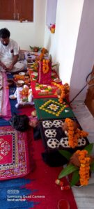 नीमकाथाना माउंडा कला बालाजी मंदिर के पास नव निर्मित मंदिर प्रांगण मे राधा कृष्ण मंदिर मे मूर्ति प्राण प्रतिष्ठा के लिए अनुष्ठान की विधिवत पूजा अर्चना की गई जानकारी देते हुए पं विकास शास्त्री नीमकाथाना ने बताया कि आचार्य पं. जगदीश प्रसाद शास्त्री भूदोली वालों के आचार्यत्व मे पं. मनीष शर्मा काँवट, पं. आदित्य, पं.गिरीश जोशी सहित अनेक विप्र जनों ने पूजा करवा कर मूर्तियों को अन्नाधिवास, जलाधिवास करवाया मुख्य यजमान मुकेश कुमार ने सपत्निक नव ग्रह पूजा, मातृका पूजा, वरुण पूजा, वास्तु पूजा सहित विप्र अर्चन किया। दिनांक 25 मई को शोभायात्रा के बाद शुभ लग्नानुसार मूर्ति स्थापना की जाएगी।