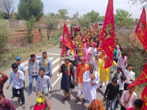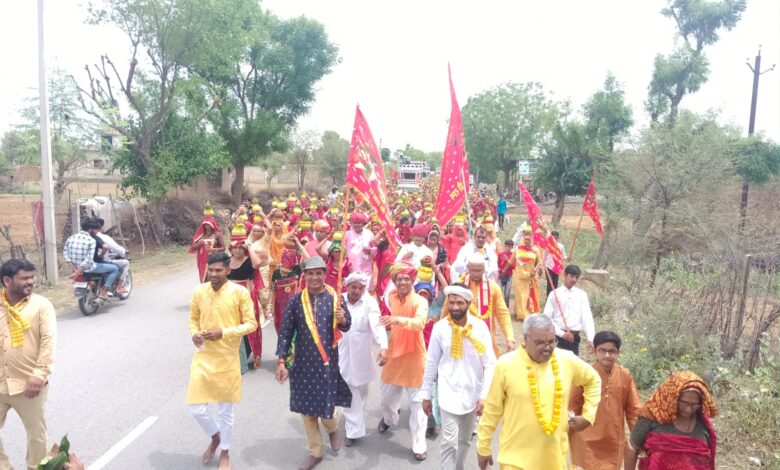 Rajasthan News चंवरा-किशोरपुरा के पलटुदास अखाड़े के पंचमुखी बालाजी मंदिर में उमड़ा श्रद्धा का सैलाब तपती धूप 9 किलोमीटर पैदल 3 किलोमीटर लंबी कतार