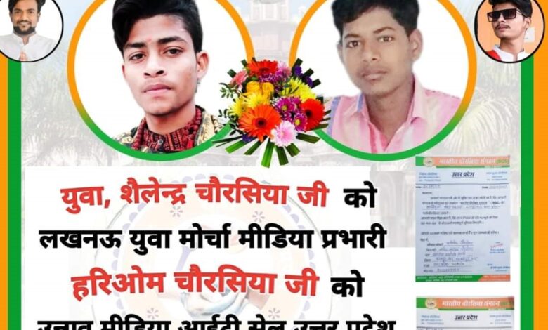 लगातार भारतीय चौरसिया संगठन गरीब और असहाय लोगो की मदद कर एवं चौरसिया समाज के लोगो को जुड़ने का कार्य निरन्तर कर रहे है ।आज फिर रास्ट्रीय उपाध्यक्ष डॉ. रंधीर चौरसिया, प्रदेश अध्यक्ष जितेंद्र चौरसिया एवं महिला प्रदेश अध्यक्ष डॉ.रंजू चौरसिया जी के नेतृत्व में लखनऊ से शैलेन्द्र चौरसिया को युवा मीडिया प्रभारी और जिला उन्नाव से हरिओम चौरसिया को मीडिया आईटी सेल की जिम्मेदारी सौंपी गयी।