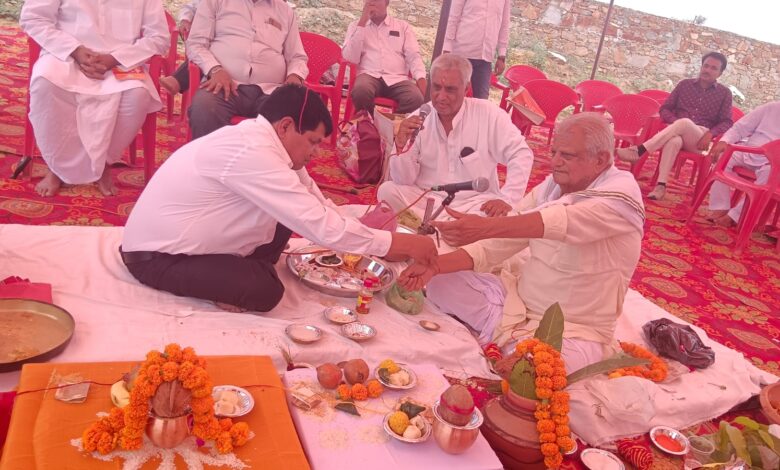 नीमकाथाना गोड़ विप्र सेवा समिति के संयुक्त तत्वाधान में आज नवनिर्मित भगवान परशुराम भवन निर्माण हेतु गावडी मोड स्थित भूमि पर भूमि पूजन किया गया जिसमें आचार्य पंडित जगदीश प्रसाद शास्त्री के आचार्यत्व में अनेक विप्र जनों ने वैदिक मंत्रोच्चार के साथ भूमि पूजन करवाया साथ ही शिला पूजन करवाकर वैदिक मंत्रोच्चार के साथ भवन की नीव रखी गई ये रहे मौजूद इस मौके पर देवकीनंदन तिवारी, समाज के अध्यक्ष विमल भारद्वाज,पीके जोशी,प्रदीप कुमार शर्मा,मुकेश कुमार शर्मा,शशि शर्मा,धर्मेंद्र शर्मा, पवन काका, पवन शर्मा, अशोक कश्मीरी, प्रभुदत्त शर्मा, सुभाष शर्मा, आनंद शर्मा, अनिल बाबू, अरविन्द शर्मा, मुकेश शर्मा,श्रवण भारद्वाज, हनुमान प्रसाद शर्मा,महंत बजरंग शर्मा,पं. गोपाल शर्मा, उत्तम शर्मा,नरेश शर्मा,दौलत राम गोयल सहित समाज के जेष्ठ व श्रेष्ठ लोग मौजूद रहे