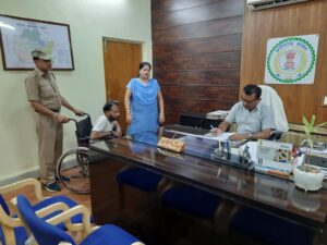 कार्यालय कलेक्टर जिला जांजगीर चांपा के सुश्री ऋचा प्रकाश चौधरी के निर्देश में आज अपर कलेक्टर एसपी वैद्य ने अपने कार्यालय कक्ष में कलेक्टर जनदर्शन कार्यक्रम में जिले के विभिन्न दूरस्थ स्थानों से पहुंचे आम लोगों से भारी बारिश से मुलाकात कर पूरी गंभीरता से उनकी समस्याओं को सुनकर संबंधित अधिकारियों को त्वरित कार्यवाही करने के दिशा निर्देश दिए जनदर्शन में आज तहसील बड़ौदा के पनावड़ा निवासी भानु प्रकाश आदि के द्वारा स्व सहायता राशि हेतु आवेदन प्रस्तुत किया उन्होंने बताया कि उसके पुत्र अग्नि दुर्घटना में मृत्यु हो जाने के कारण जिसकी सहायता राशि स्वीकृत नहीं हो रहा है जिस पर अपर कलेक्टर ने तत्काल कार्यवाही करते हुए संबंधित तहसीलदार को फोन लगाकर जांच कर कार्यवाही करने के दिशा निर्देश दिए इसी प्रकार अकलतरा विकासखंड के दिव्यांग विजय कुमार द्वारा ट्राई साइकिल प्रदाय करने का आवेदन लेकर पहुंचे जिस पर अपर कलेक्टर ने समाज कल्याण विभाग के अधिकारी को शीघ्र निराकरण करने के दिशा निर्देश दिए राज जनदर्शन में कुल 105 आवेदन प्राप्त हुए