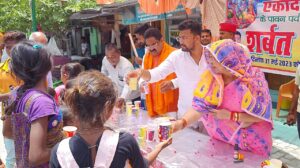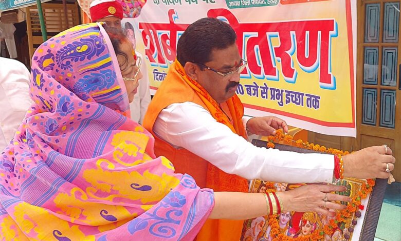 Uttar Pradesh News भंडारा मे प्रातः 11 बजे से सांयकाल तक कार्यकर्ताओं द्वारा महात्मा गाँधी मार्ग हरदोई मे आने जाने वाले राहगीरों व क्षेत्रवासियों को भीषण गर्मी से राहत के लिए शरबत का वितरण कर, सेवा और सद्भाव का संदेश दिया गया।