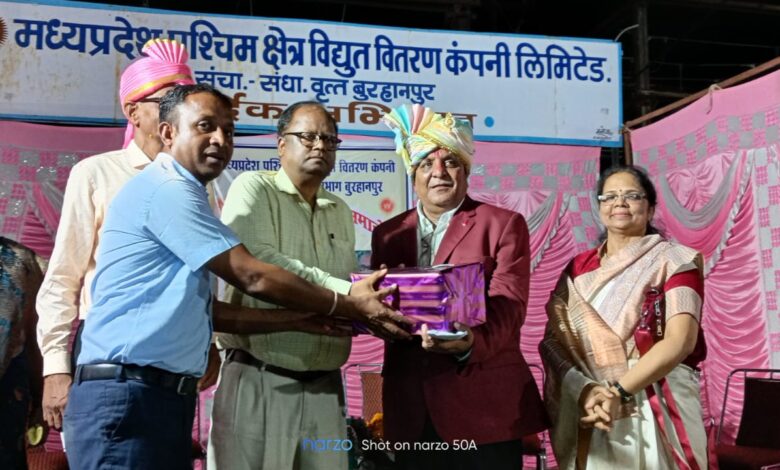 बुरहानपुर : मध्यप्रदेश विधुत मंडल पश्चिमी क्षेत्र के मुख्य लेखापाल उपेंद्र जैन का बिदाई समारोह कार्यक्रम विधुत मंडल कर्मचारियों, अधिकारियो, लाईन मेन द्वारा विधुत परिक्षेत्र में रखा गया। कार्यक्रम में उपस्थित अधीक्षण यंत्री बीडी फ्रेंकलिन, कार्यपालन यंत्री सुनील मावस्कर, प्रभारी लेखापाल राजेश चौकसे, जन प्रतिनिधि मनोज तारवाल, विधायक सुरेन्द्र सिंह कर्मचारी, अधिकारी के अलावा परिवार के सदस्य गण उपस्थित रहे। अपने पति देव के बिदाई संबोधन में श्रीमती जैन ने भावुक शब्दों में अपनी बिदाई के क्षण को याद कर पति की बिदाई के उत्साह जनक माहौल को देख पश्चिमी क्षेत्र विधुत वितरण कंपनी कर्मचारियों का आभार व्यक्त कर कहा कि जिस प्रकार बेटी बिदा हो ससुराल जाती है उसी प्रकार मेरे पति देव की बिदाई देकर मिसाल कायम करी है।में आपका शुक्रिया अदा किन शब्दों में करू समझ नही आ रहा। पूर्व मंत्री अर्चना दीदी ने भावी भविष्य के लिए शुभकामना दे कहा टिक्कू भाई ने अपना जीवन मजदूरों के साथ दोस्ताना व्यवहार कर,विभाग के दिए दायित्वों का निर्वहन कर्ज और फर्ज दोनो अदा कर पुरा किया। बिदाई समारोह में उपस्थित समाज सेवी कीमत सेठ मतवानी, संजय चौकसे, आशीष शुक्ला, रुद्रेश्वर एंडोले, करण चौकसे उपस्थित रहे।