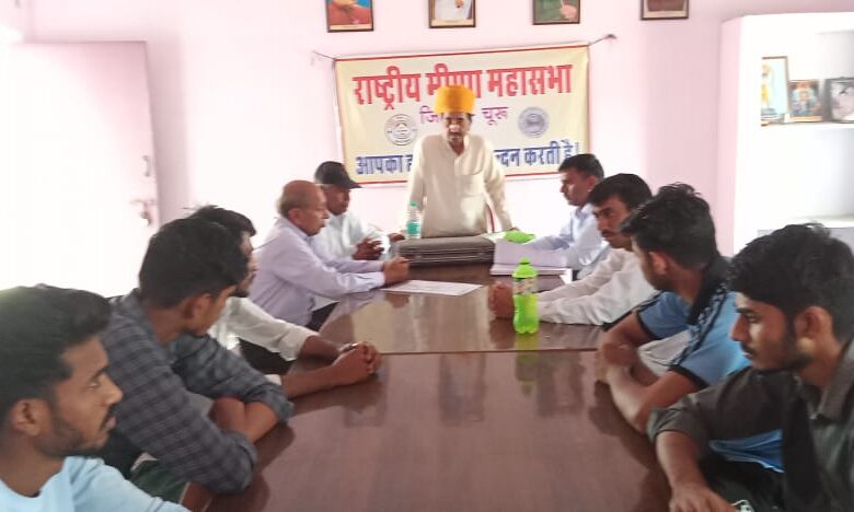 Rajasthan News राष्ट्रीय मीणा महासभा जिला चूरू की कोर कमेटी की बैठक आज आदिवासी मीना छात्रावास चूरू में महासभा के राष्ट्रीय महासचिव व जिला अध्यक्ष किरोड़ीमल मीना की अध्यक्षता में सम्पन्न हुई।
