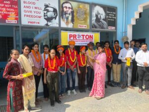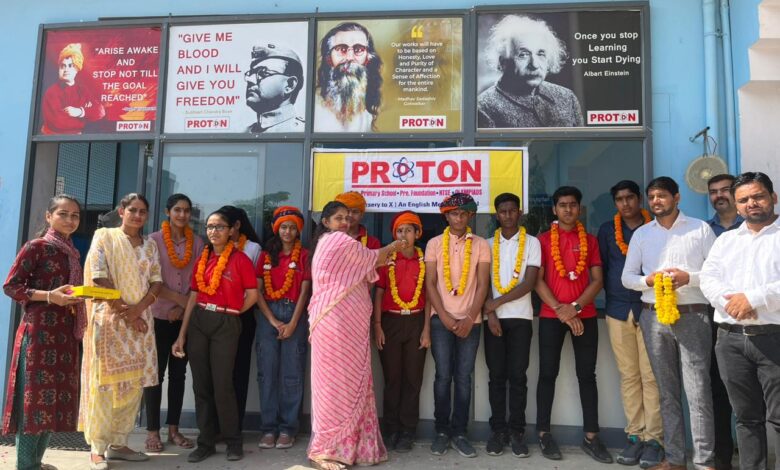 चौमू : प्रोटोन एकेडमी सीनियर सेकेंडरी स्कूल राधा बाघ चोमू में दसवीं बोर्ड में 90% से अधिक अंक प्राप्त करने वाले छात्र छात्राओं को माला साफा पहना कर मिठाई खिला कर सम्मानित किया ।इस अवसर पर संस्था निदेशक एवं प्रिंसिपल मिथिलेश नरेड़ा ने बताया कि हर वर्ष की भांति प्रोटोन एकेडमी सीनियर सेकेंडरी स्कूल ने बोर्ड कक्षाओं में परी क्षेत्र का सर्वश्रेष्ठ रिजल्ट दिया है। इस वर्ष दसवीं बोर्ड में छात्र लक्ष्य सैनी ने 93% अंक प्राप्त किए हैं।