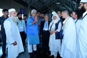 उपराज्यपाल ने जम्मू-कश्मीर केंद्र शासित प्रदेश के हज यात्रियों के पहले जत्थे को श्रीनगर अंतरराष्ट्रीय हवाईअड्डे से हरी झंडी दिखाकर रवाना किया