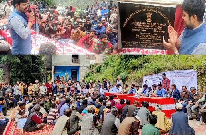 एक महत्वपूर्ण घटना में, उपायुक्त किश्तवाड़, डॉ. देवांश यादव, आईएएस, ने आज किश्तवाड़ जिले के नागसेनी ब्लॉक का दौरा किया। बीडीसी अध्यक्ष नागसेनी, मोहम्मद अशरफ सहित प्रमुख स्थानीय प्रतिनिधि; डीडीसी सदस्य नागसेनी, फैसल हुसैन; सरपंच पियास; एसीडी किश्तवाड़, डीएसडब्ल्यूओ जुबैर अहमद, सुनील भुत्याल; तहसीलदार नागसेनी, माजिद जहांगीर; बीडीओ अंजिल सिंह; काहो किश्तवाड़, डॉ. संजय सेन; और ZEO नागसेनी, उपायुक्त के साथ थे। साथ में, उन्होंने एक महत्वपूर्ण अवसर में भाग लिया जहां 66 योजनाओं के तहत आठ गांवों में कुल 12 किलोमीटर पेवर ब्लॉक (टाइल पाथ) के निर्माण के लिए आधारशिला रखी गई। यह पहल किरू हाइड्रोइलेक्ट्रिक पावर प्रोजेक्ट के पुनर्वास और पुनर्वास (आरआर) योजना के तहत 3 करोड़ रुपये के निवेश की राशि है। सभा को संबोधित करते हुए, उपायुक्त डॉ. देवांश यादव ने जोर देकर कहा कि बेहतर ग्रामीण संपर्क निस्संदेह नागसेनी के निवासियों के लिए बेहतर पहुंच और जीवन की गुणवत्ता में सुधार लाएगा। इसके अलावा, उपायुक्त ने क्षेत्र के लिए आरआर योजना के तहत शुरू की गई अन्य महत्वपूर्ण बुनियादी ढांचा विकास परियोजनाओं पर चर्चा की। उन्होंने संबंधित निष्पादन एजेंसियों को आरआर योजना के तहत जन स्वास्थ्य केंद्र (पीएचसी), जिला मुख्यालय पर किसानों के लिए कोल्ड स्टोरेज की सुविधा और नागसेनी में एक डेयरी प्रसंस्करण इकाई सहित अतिरिक्त बुनियादी ढांचे के निर्माण पर काम की गति तेज करने का निर्देश दिया। उपायुक्त ने जिला प्रशासन की अन्य पहलों पर भी प्रकाश डाला, जैसे नागसेनी के छात्रों के लिए नि: शुल्क एनईईटी कोचिंग कक्षाएं, चल रहे पीएमएवाई पंजीकरण शिविर, और हैलो किश्तवाड़, एक इंटरएक्टिव वॉयस रिस्पांस सिस्टम (आईवीआरएस) जिसे फोन पर लोगों की शिकायतों को दूर करने के लिए डिज़ाइन किया गया है। उन्होंने लोगों से इन पहलों का लाभ उठाने का आग्रह किया। अपनी टिप्पणी में, डीसी किश्तवाड़ ने एक समृद्ध और समावेशी समाज के दृष्टिकोण को साकार करने में प्रशासन और समुदाय के बीच सहयोगात्मक प्रयासों द्वारा निभाई गई महत्वपूर्ण भूमिका पर जोर दिया। इस दौरान चल रहे प्रखंड दिवस कार्यक्रम के तहत किश्तवाड़ के उपायुक्त डॉ. देवांश यादव ने भी लोगों की समस्याएं सुनीं और मौके पर ही उनका निस्तारण किया.
