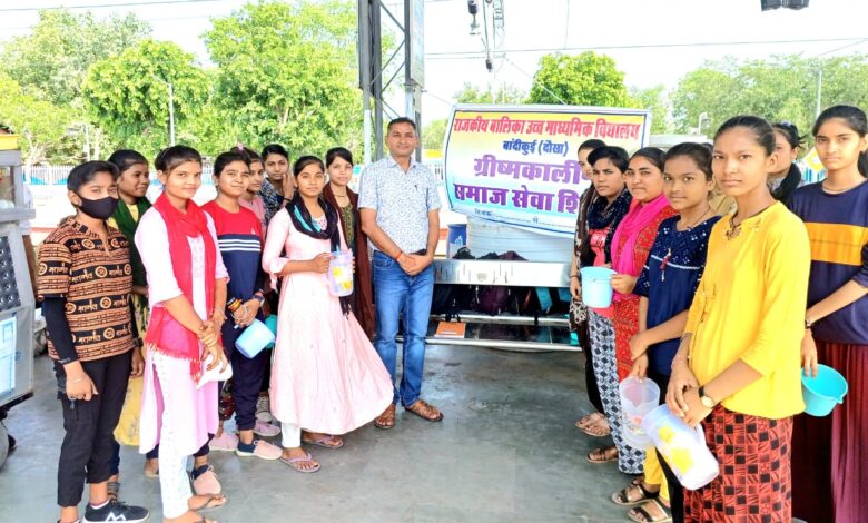 राजकीय बालिका उच्च माध्यमिक विद्यालय बांदीकुई में समाज सेवा शिविर का आयोजन 8 जून 2023 से 22 जून 2023 तक किया जा रहा है जिसके अन्तर्गत प्रधानाचार्य श्रीमती सविता मीना और शिविर प्रभारी देवेन्द्र कुमार शर्मा ने बालको में मानव और प्राणी मात्र के प्रति सेवा भाव जागृत करने के लिए प्रेरित किया और बताया की प्राणी मात्र की सेवा ही ईश्वर सेवा है आदमी इस सेवा के माध्यम से पुण्य अर्जित कर अपना ईह लोक और परलोक भी सुधार सकता है । इस अवसर पर बालिकाओं ने श्री देवेन्द्र शर्मा उप प्राचार्य के नेतृत्व में रेलवे स्टेशन पर आकर रेल यात्रियों को श्री राधेकृष्ण नवयुवक मण्डल के सानिध्य में संचालित जल सेवा में जल पिलाकर सेवा का पान किया । जल सेवा कर बालिकाओं को आत्मिक सुख और शांति प्राप्त हुई ।