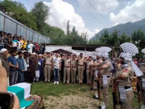 12 जून लालबाजार में 12/07/2022 को हुए आतंकी हमले में घायल होकर आज शहीद हुए लोहरसांजी, कोकेरनाग अनंतनाग निवासी शहीद पुलिस कर्मी फैयाज अहमद को श्रद्धांजली अर्पित करने के लिए पुष्पांजलि समारोह आयोजित किया गया. उनका पैतृक गाँव। डीआईजी आईआरपी कश्मीर के नेतृत्व में पुलिस अधिकारी, कमांडेंट आईआरपी-10वीं बटालियन, कमांडेंट आईआरपी-13वीं बटालियन, कमांडेंट आईआरपी-17वीं बटालियन, उप. आईआरपी-10वीं बटालियन, 13वीं बटालियन के कमांडेंट, आईआरपी-10वीं और 11वीं बटालियन के डीएसपी, एसडीपीओ कोकेरनाग और एसएचओ कोकेरनाग, अन्य वरिष्ठ पुलिस अधिकारियों/अधिकारियों और क्षेत्र के स्थानीय लोगों ने समारोह में भाग लिया और नश्वर अवशेषों पर पुष्पांजलि अर्पित की और भुगतान किया कर्तव्य की पंक्ति में सर्वोच्च बलिदान के लिए शहीद को भावभीनी श्रद्धांजलि। यहां यह उल्लेख करना उचित है