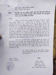 उपरोक्त घटना की रिपोर्ट 13/६/२३ को थाना पामगढ़ में दर्ज कराने गई थी आवे दिका मगर थाना प्रभारी द्वारा राजीनामा होने के लिए दबाव डालने लगा जिसके फलस्वरूप आ वेदिका की शिकायत दर्ज नहीं की जिससे परेशान होकर आ वेदिका शीतल गोस्वामी द्वारा संबंधित थाना के प्रभारी के विरुद्ध माननीय पुलिस अधीक्षक कार्यालय जिला जांजगीर-चांपा में लिखित में शिकायत दर्ज की है। संलग्न माननीय पुलिस अधीक्षक कार्यालय को ज्ञापन की कॉपी।