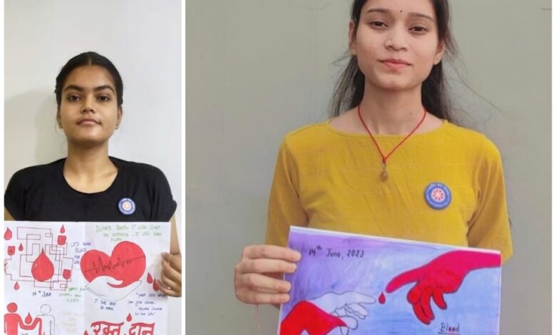 Chhattisgarh News विश्व रक्तदान दिवस पर स्वयंसेवकों ने बनाया पोस्टर