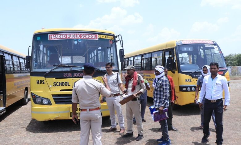 Chhattisgarh News रक्षित केंद्र जांजगीर में स्कूल वाहन की जांच हेतु शिविर का आयोजन किया गया