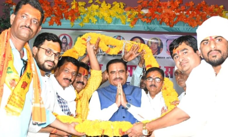 मंत्री श्री सिंह ने कहा कि आप सबके आशीर्वाद से खुरई में अधिक से अधिक मंदिर निर्माण और जीर्णोद्धार के कार्य किए गए है। भगवान परशुराम और मां बिजासेन के मंदिर निर्माण किये गए हैं। किले में नये मंदिर में शीघ्र ही मां बिजासेन की स्थापना की जाएगी। श्री सिंह ने कहा कि उनकी संकल्पना है कि खुरई में भगवान लोक की भव्य स्थापना की जाये और संस्कृत विद्यालय खोला जाये। मध्यप्रदेश की भाजपा सरकार ने संस्कृत के विद्यार्थियों को छात्रवृत्ति देने, स्कूल के पाठ्यक्रम में भगवान परशुराम को जोड़ने, मंदिर के पुजारियों को प्रतिमाह 5 हजार रूपए मानदेय देने और मंदिर की सम्पत्ति की देखरेख पुजारियों द्वारा कराये जाने के निर्णय लिए हैं। मंत्री श्री सिंह ने कहा कि सागर जिले में सबसे पिछड़े खुरई विधानसभा क्षेत्र को आपके आशीर्वाद से प्रदेश में विकास का मॉडल बनाने में सफल हुआ हूं। अभी क्षेत्र में बहुत काम करना है। आप सभी विप्रजन धर्म और संस्कृति की रक्षा का काम करें और क्षेत्र के सर्वांगीण विकास का काम हम करेंगे। कार्यक्रम में मंत्री भूपेन्द्र सिंह ने संत, महंतों एवं विप्र समाज के वरिष्ठजनों को शाल श्रीफल भेंट कर आशीर्वाद लिया। इस अवसर पर मंत्री भूपेन्द्र सिंह ने विप्र समाज के उत्कृष्ट परिणाम लाने वाले छात्रों का सम्मान किया। जिसमें राधा दुबे पिता संतोष दुबे 94 प्रतिशत, राधिका तिवारी पिता स्व. भोलेशंकर तिवारी 92.8 प्रतिशत, शिवी तिवारी पिता रामस्वरूप तिवारी 91 प्रतिशत, हिमांशु चौबे पिता भगवतशरण चौबे 90 प्रतिशत, सरिता द्विवेदी पिता सुनील द्विवेदी 90 प्रतिशत अंक प्राप्त करने पर सम्मान किया गया। इस अवसर पर रविकांत शर्मा, सर्वेश गोश्वामी, बसंत नायक, मयंक हजारी, कृष्णकांत तिवारी, आयुष भार्गव, विश्वास शर्मा, ब्रजेश महराज, टिंकू कौशिक, नीरत शर्मा, देववत पंडा, प्रदीप पाण्डेय, मिंटू त्रिपाठी, रम्मू नायक, दीपक गोश्वामी, विनय चौबे, पारस चौबे, दयाराम पाण्डेय, शुभम उदैनिया, सत्यम गोश्वामी, मधुर जोशी, गोलू गोश्वामी, अभिषेक पुराहित, राहुल दुबे, रामकुमार कौशिक, पंकज शर्मा, सुनील दिवेद्वी, रक्कू दुबे, आनंद दुबे, शेलेन्द्र तिवारी, अमित भार्गव, बंटी लिटोरिया, कौशल बहोलिया, वीरू समाधिया, शिवनारायण दीक्षित, योगेश पस्तोर, विवेक तिवारी, दिनेश दुबे, सुनील गौतम, सौरभ दुबे, कृष्णकांत उदैनिया, अमित मिश्रा, रवि देवलिया, राहुल टोटे, ऋषि तिवारी, आकाश देवलिया, प्रशांत समाधिया, राजू चौबे, शरद व्यास, आशीष नायक, अक्षय मिश्रा, आकाश मिश्रा,रामचरण तिवारी, रामरतन नायक, रामप्रसाद दुबे, सीताराम लिटोरिया, बद्री प्रसाद दीक्षित, भगवानदास चौबे, भगवानदास पांडे, सीएल पांडे, रघुवीर प्रसाद शर्मा, शंभू शर्मा, प्रेम प्रकाश दुबे, श्याम लाल पांडे, शंकर सहाय गोश्