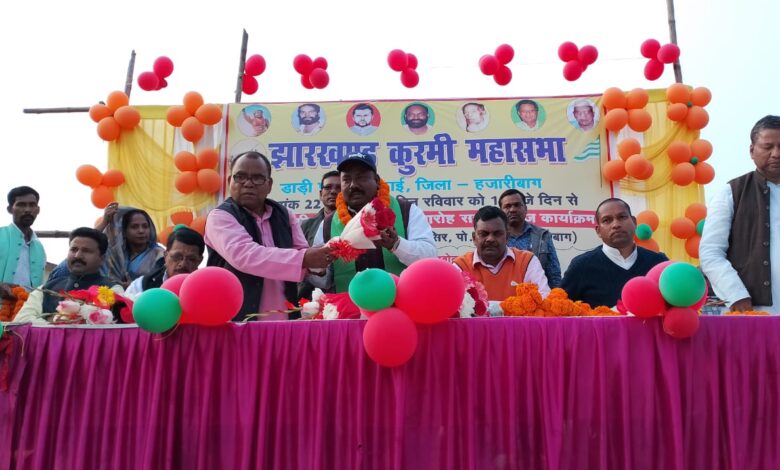 Jharkhand News हजारीबाग जिसमें सभी वक्ता गण कुरमी समाज का विकास कैसे होगा इस पर विचार भिन्न भिन्न पारकर व्यक्त किया गया है