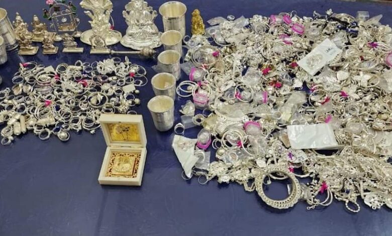 01. चांदी का आभूषण वजन करीब 6 किलो ग्राम।
