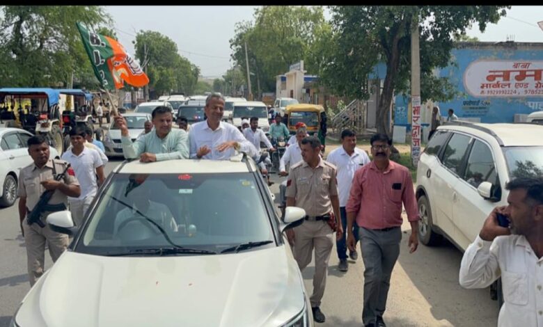 Haryana News दो किलोमीटर लम्बे काफिले के साथ डाॅ अभय सिंह विधायक नांगल चौधरी ने निकाली विकास तीर्थ यात्रा