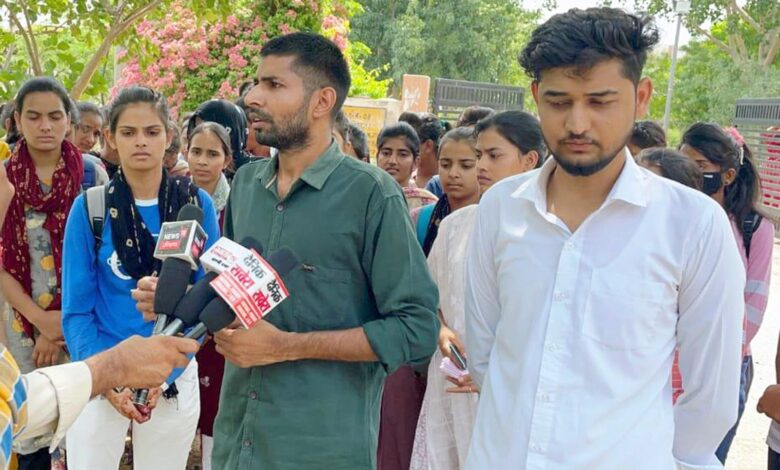 Haryana News खराब परीक्षा परिणाम के विरोध में इनसो ने आईजीयू के खिलाफ महेंद्रगढ़ के राजकीय महिला महाविद्यालय में किया प्रदर्शन