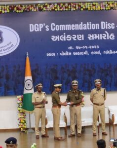 एएसआई श्री हरदेव सिंह वाघेला को पुलिस महानिदेशक के हाथों DGP' s commendation disc और प्रशंसा पत्र देकर किया गया सम्मानित*