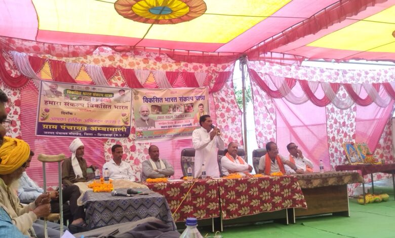 मोहखेड:- विकसित भारत संकल्प यात्रा ग्राम पंचायत अम्बामाली और पालाखेड़ पंचायत में पहुंची। यहां भाजपा के वरिष्ठ नेता मदन साहू, ऋषि सोनी,संतोष साहू, बबलू सूर्यवंशी ने यात्रा का स्वागत किया। यात्रा के दौरान जरूरतमंद एवं पात्र लोगों को केंद्र व राज्य सरकार की योजनाओं का लाभ उपलब्ध करवाया गया। इन कार्यक्रमों में बड़ी संख्या में ग्रामीण सरकारी सेवाओं का लाभ लेने के लिए पहुंचे।