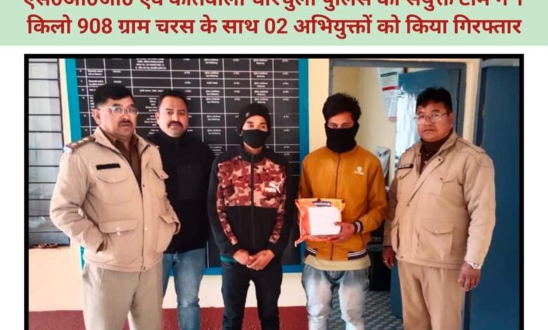 एस0ओ0जी0 एवं कोतवाली धारचुला पुलिस की संयुक्त टीम ने 1 किलो 908 ग्राम चरस के साथ 02 अभियुक्तों को किया गिरफ्तार ।